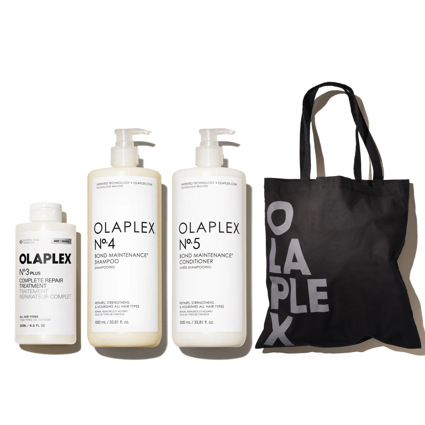 Commit to dramatically stronger, healthier hair with value liters of our original Nº.4 BOND MAINTENANCE® SHAMPOO & N°.5 BOND MAINTENANCE® CONDITIONER plus a jumbo size N°.3PLUS COMPLETE REPAIR TREATMENT to repair damage in 3 minutes. This essential 3-step routine reduces breakage and leaves hair visibly smoother and shinier. Stock up on these biggest bestsellers to save big.